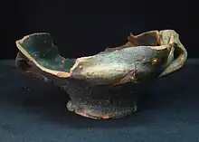 Lo que verdaderamente las especifica como trabajo novedoso es el acabado pues presentan en las superficies un aspecto metalescente-irisado (brillo metálico). Las formas halladas son variadas: jarros, huchas, cántaros, redomas, etc. La pieza más representativa de este conjunto es la taza que servía como salero cuya boca está lobulada por seis pellizcos. Esta pieza con estas características no se ha encontrado en otros yacimientos de la región; su origen habría que buscarlo en Aragón, Paterna, Manises y sureste de Francia.[4]
