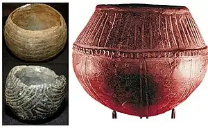 Agrupa las cerámicas más antiguas, con arcillas bastas cocidas a poca temperatura. Las formas son de tendencia esférica, semiesférica, paraboloide o troncocónica, de superficies lisas y en general sin decoración.[5]