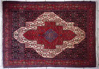 La alfombra de Senneh se fabrica bien con colores oscuros como los azules oscuros o rojos burdeos, bien con tonos claros y brillantes, como el marfil y el amarillo; los colores están siempre armoniosamente combinados.