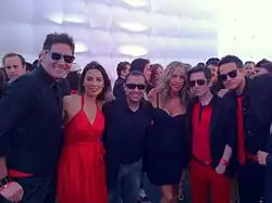 ![]() Conductores y panelistas en la alfombra roja de los premios Copihue de Oro 2011. De izq. a der. Francisco Saavedra, Lucía López, Cristián Pérez, Paulina Rojas, Carlos Cisterna y César Barrera. | ||