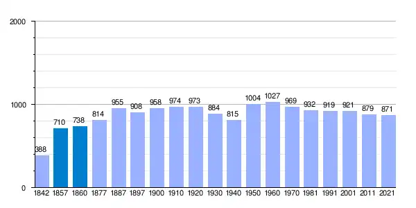 | Gráfica de evolución demográfica de Alfondeguilla[1] entre 1842 y 2021 |