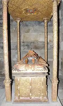 Se encuentra sepultado en la catedral de Braga, en un mausoleo que se considera proveniente de Flandes, aunque es posible que fuese que la obra fuese ejecutada en Portugal,[3] supuestamente encomendado por su hermana Isabel, esposa de Felipe III de Borgoña en una tumba de bronce dorado.[1]