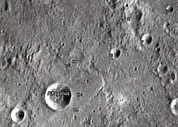 Por convención estos elementos son identificados en los mapas lunares poniendo la letra en el lado del punto medio del cráter que está más cercano a Alfraganus.