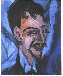 Durante sus estudios en Berlín, Döblin había escrito su segunda novela, Der Schwarze Vorhang.[24] La novela retrata el desarrollo de la sexualidad de su protagonista, Johannes, y explora los temas del amor, el odio y el sadismo; en su uso del montaje literario, Der Schwarze Vorhang ya presagia las técnicas radicales que Döblin sería pionero en Berlin Alexanderplatz.[25] Presentado por un conocido mutuo, Döblin conoció a Georg Lewin, un estudiante de música conocido como Herwarth Walden, quien fundó la revista expresionista Der Sturm en 1910. Der Sturm, inspirada en el periódico Die Fackel (La antorcha) de Karl Kraus, pronto contaría a Döblin entre sus contribuyentes más involucrados, y le proporcionaron un lugar para la publicación de numerosas contribuciones literarias y ensayísticas.[26] A través de Walden, Döblin conoció al poeta Else Lasker-Schüler. En reuniones regulares en el Café des Westens en Kurfürstendamm o en el bar de vinos Dalbelli, Döblin conoció el círculo de artistas e intelectuales que se convertiría en el centro del movimiento expresionista en Berlín, incluidos Richard Dehmel, Erich Mühsam, Paul Scheerbart y Frank Wedekind, entre otros.[27] En octubre de 1911 conoció al pintor Ernst Ludwig Kirchner, quien pintó varios retratos de Döblin entre 1912 y 1914 e ilustró algunas de las obras literarias de Döblin.[26] La primera novela de Döblin, Der Schwarze Vorhang, se publicó en Der Sturm, y en noviembre de 1912 la editorial de Múnich Georg Müller publicó su colección de novelas bajo el título Die Ermordung einer Butterblume und andere Erzählungen.[28] En mayo de 1913, completó su tercera novela Die drei Sprünge des Wang-lun. Publicada en 1916, esta novela histórica sobre el levantamiento político en la China del siglo XVIII fue un avance literario para Döblin, lo que le valió la aclamación literaria, el reconocimiento público y el prestigioso Premio Fontane.[29] Comenzó a escribir Wadzeks Kampf mit der Dampfturbine al año siguiente, completándolo en diciembre de 1914, aunque no se publicó hasta 1918.[30]
