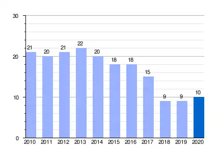 | Gráfica de evolución demográfica de Algara entre 2010 y 2020 |