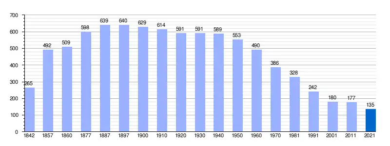 | Gráfica de evolución demográfica de Algodre[14] entre 1842 y 2021 |