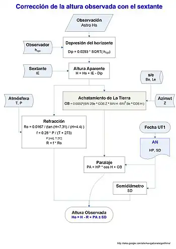 Los algoritmos sobre navegación avanzada incluyen pilotaje y navegación astronómica: loxodromia y ortodrómica. Corrección de la altura del sextante. Posición astronómica con calculadora, Plantilla y Carta mercatoria en blanco. Posición por 2 Rectas de Altura. Posición a partir de n Rectas de Altura. Ecuación vectorial del Círculo de Altura. Posición para solución vectorial a partir de dos observaciones. Posición por Círculos de Altura: solución matricial. Y artículos relacionados con procedimientos antiguos como la obtención de la latitud por la estrella polar, la meridiana, el método de las distancias lunares, etc.