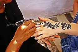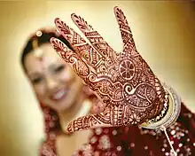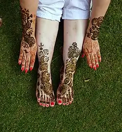Mendhi es la variante local de diseños de henna en el subcontinente indio. Las mujeres de Sri Lanka, Nepal, India, Bangladés, Pakistán y las islas Maldivas utilizan mendhi para ocasiones festivas, como bodas, eventos y ceremonias religiosas tradicionales.