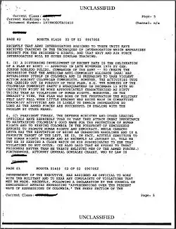 - «Documentos desclasificados Embajada de EEUU en Colombia».