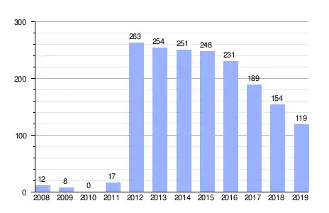 | Gráfica de evolución de la deuda viva del Ayuntamiento de Alicún entre 2008 y 2019 |