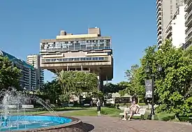 Una tercera obra es el edificio en Montevideo 1406, que hizo junto a Francisco Bullrich y Alberto Casares, frente a la plaza Vicente López, con 21 pisos. Se jugó con la grilla estructural vista y los paños ciegos de ladrillo visto y carpinterías de piso a techo. En la planta baja hay locales comerciales vidriados a modo de basamento.