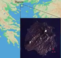 Existen tres grupos de canteras en la isla de Tasos, en la acrópolis de la ciudad de Tasos,[1] en Limenas, en el cabo Vathy más al sur, y en Saliaria, y por fin, la más importante en Aliki. Une parte de estas canteras han sido destruidas por la explotación moderna, que se ha retomado de manera intensiva en los últimos decenios del siglo XX. Estos mármoles presentan algunas diferencias, el de Aliki se caracteriza por un grano más bien grueso y un color que varía del blanco al gris claro, con a veces vetas azuladas que lo confunden con el mármol de Proconeso. Estas particularidades están en el origen de su gran difusión en los sectores donde los efectos decorativos de estas vetas eran apreciados, a saber, para los enlosados, los chapeados, y las columnas.