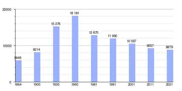 | Gráfica de evolución demográfica de Aljustrel entre 1864 y 2021 |