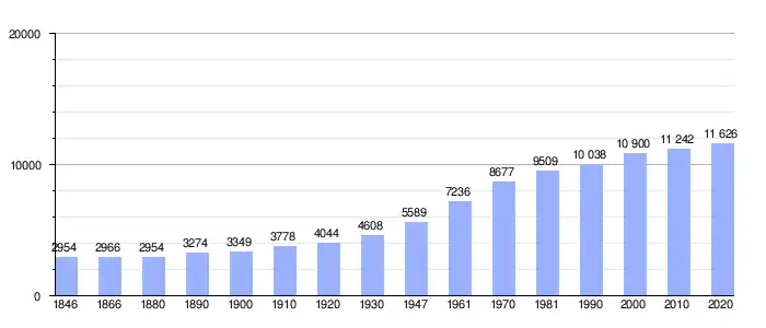 Todos los datos históricos relativos al actual municipio, el siguiente gráfico refleja su evolución demográfica, incluyendo municipios después de efectuada la fusión el 1 de enero de 1977.