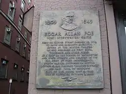 Edgar Allan Poe nació el 19 de enero de 1809 en la ciudad de Boston, donde ya había nacido su hermano mayor, William Henry Leonard (1807). La hermana menor, Rosalie, nació en Richmond, en 1810.[33] Edgar pudo haber recibido dicho nombre por un personaje de William Shakespeare que aparece en la obra El rey Lear, que representaban los padres en 1809, año de su nacimiento.[34] David Poe abandonó a su familia en 1810,[35] y su mujer, Elizabeth, murió un año después de tuberculosis; tenía veinticuatro años. Lo único que conservó Edgar de sus padres biológicos fue un retrato de su madre y un dibujo del puerto de Boston. A su hermana Rosalie le correspondió un joyero vacío.[36][37] El motivo por el cual Edgar y Rosalie fueron adoptados fue que, al morir su madre, los niños quedaron totalmente desamparados, en Richmond, mientras que los abuelos, que residían en Baltimore, se hacían cargo de William Henry, que ya vivía con ellos.[38] En cualquier caso, Edgar fue acogido por una de las familias caritativas que habían cuidado de los niños al morir su madre: el matrimonio formado por Frances y John Allan, de Richmond (Virginia), mientras que Rosalie fue acogida por la familia Mackenzie. Los Allan y los Mackenzie eran vecinos y mantenían una estrecha amistad.[39]