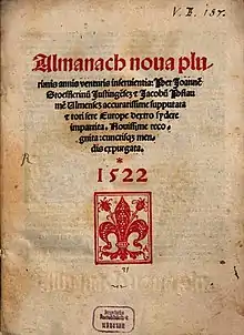 - Stöffler, Johannes; Pflaum, Jakob (1507). Almanach nova, plurimis annis venturis inservientia (en latin). Petr. Liechtenstein. OCLC 604721130. Consultado el 14 de mayo de 2020.