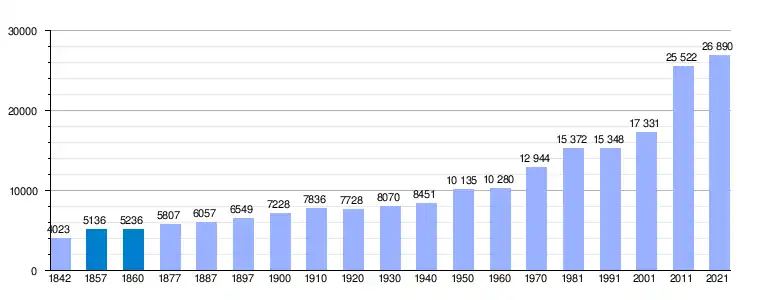 | Gráfica de evolución demográfica de Almazora/Almassora[7] entre 1842 y 2021 |