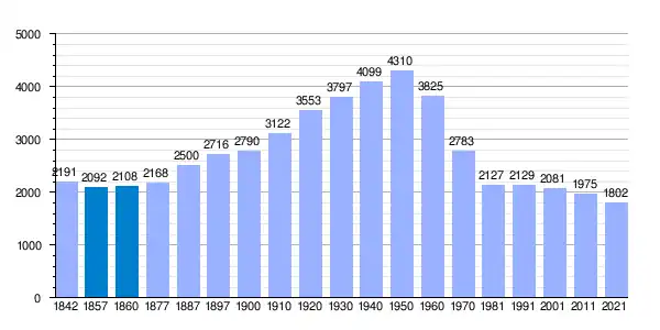 | Gráfica de evolución demográfica de Almoharín[11] entre 1842 y 2021 |