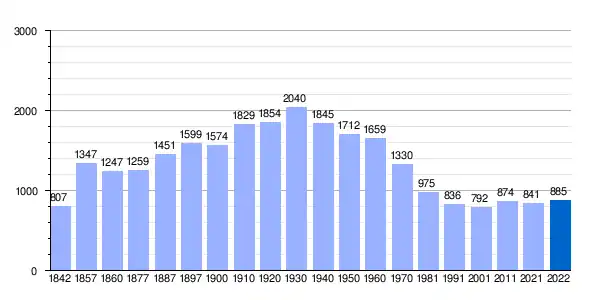 Población de derecho (1842-1991, excepto 1857 y 1860 que es población de hecho) o población residente (2001-2021) según los Censos de Población desde 1842. Población según el padrón municipal de 2022 del INE. |