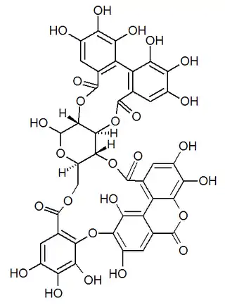Moléculas de ácido gálico, ácido luteico y ácido hexahydroxydifénico están presentes en la estructura de alnusiina, unido a un residuo de glucosa.