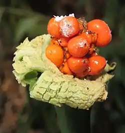 La planta, incluido el espádice, contiene cristales de oxalato de calcio en forma de aguja conocidos como rafidios que se cree que son un mecanismo de defensa contra los depredadores de plantas[6] que pueden desgarrar y dañar las membranas mucosas de la garganta o el esófago.[7]