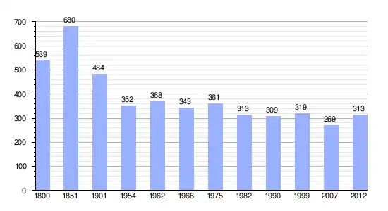 Los resultados de los años 1800 y 1851 son la suma final (aproximativa) de todos los datos parciales obtenidos antes de la creación de la comuna (16 de abril de 1859).