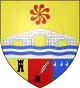 En campo de oro, un puente de tres arcos, de plata, mazonado de sable, puesto sobre ondas de agua de azur y plata y surmontado de un sol virgulado de ocho rayos, de gules. Punta terciada: 1º, en campo de oro, una torre de sable, abierta del mismo metal; 2º, en campo de gules, un tintero de sable, con una pluma de plata, y 3º, en campo de azur, tres vírgulas de plata, puestas en faja y en el jefe.