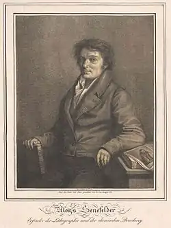 Litografía-retrato de Aloïs Senefelder en la edición francesa de su libro L'Art de la lithographie (1819).