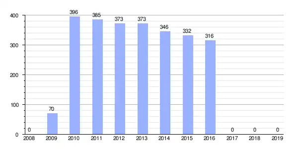 | Gráfica de evolución demográfica de Alpujarra de la Sierra[1] entre 1981 y 2021 |