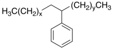 | Fórmula semidesarrollada | C6H5CHR1R2 donde R1 = CnH2n+1 y R2 = CmH2m+1 m,n son enteros m≥0, n≥1 (típicamente 10-16) | |