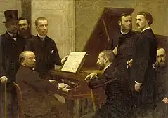 - Sentados: Emmanuel Chabrier en el piano, Edmond Maître y, algo alejado, Amédée Pigeon.