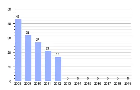 | Gráfica de evolución de deuda viva del Ayuntamiento de Alsodux entre 2008 y 2019 |