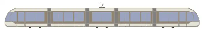 - Cinco módulos: longitud: 30 m, 200 pasajeros: 56 sentados, 144 de pie