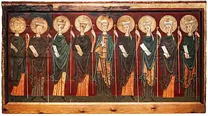 En el altar se pueden ver nueve obispos, uno de los cuales, el central es probablemente Sant Serni, un mártir de Toulouse. Los obispos que aparecen en los laterales son Martín y Bricio y están identificados mediante unas inscripciones.