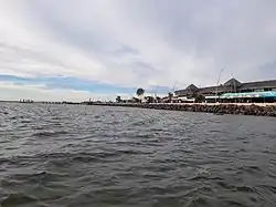 Detrás de la playa lado está, hay restaurantes especializados en mariscos y cócteles pescado frito que son muy populares con las familias de los alrededores.