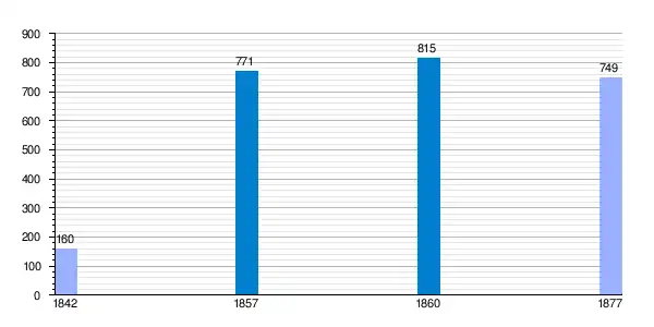 | Gráfica de evolución demográfica de Altet[2] entre 1842 y 1877 |