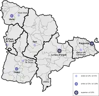 Cinco municipios concentran el 50% de la población del ámbito y los dos primeros concentran hasta el 30%. Seo de Urgel (17,4%), Puigcerdà (11,2%), Tremp (8,3%), Viella y Medio Arán (6,4%) y Puebla de Segur (4,4%). Después se encuentras los municipios de Pont de Suert (3,3%), Oliana (3,0%), Sort (2,9%), Bellver de Cerdaña (2,6%) y Alto Arán (2,3%).[4]