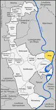 Se encuentra ubicado al sureste del estado, cerca de las ciudades de Ludwigshafen, Espira y Worms, y del río Rin, que lo separa de los estados de Hesse y Baden-Wurtemberg.