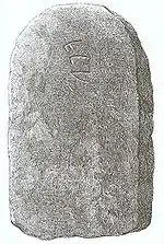 La piedra de Kinneve (Vg 134) es un fragmento de roca (mide 7,4 x 5,0 x 2,0 cm)[16] de saponita roja datada alrededor del 600 d. C.[9] Fue encontrada por un capellán en una tumba de la rectoría de Kinneve socken, Suecia.[9] La piedra actualmente se encuentra en la colección del museo de Västergötland museum, en Skara, Suecia.[9] En la inscripción se lee: