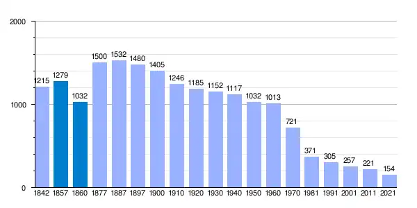 | Gráfica de evolución demográfica de Alustante[3] entre 1842 y 2021 |