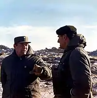 ![]() Gral Brig. Daher (izq) dando indicaciones al Tte. Cnl. Seineldín en Malvinas. | ||
