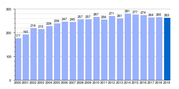 | Gráfica de evolución demográfica de Amézaga de Zuya[3] entre 2000 y 2019 |