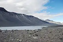 Lago Vanda es un lago amíctico en el valle Wright, en la Tierra de Victoria, Dependencia Ross, Antártida.