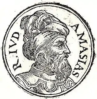 ![]() Imagen de Amasías publicada en Promptuarii íconum insigniorum (1553) de Guillaume Rouille (¿1518? - 1589). | ||