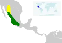Vive cerca de los arroyos, preferentemente en cañones con matorrales de sicomoros o agaves.[3]