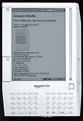Kindle (/ˈkɪndl̩/) es un lector de libros electrónicos (e-books) portátil que permite comprar, almacenar y leer libros digitalizados, creado por la tienda virtual de Amazon.com o bien libros y documentos propiedad del usuario mientras estos estén en archivo .MOBI .AZW3 o PDF. En 2011, se habían vendido más de 4 millones de dispositivos.[1]