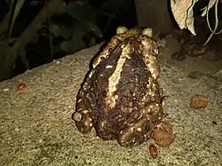 ![]() Una hembra de Rhinella icterica con Amblyomma rotundatum | ||