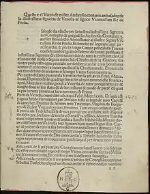 - Contarini, Ambrogio (1487). Viaggio al signor Usun Hassan re di Persia (en italiano). Annibale Fossi.