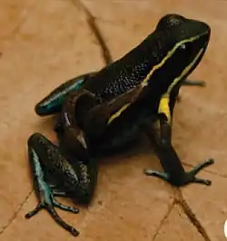- Silverstone, 1976 : A revision of the poison arrow frogs of the genus Phyllobates Bibron in Sagra (Family Dendrobatidae). Natural History Museum of Los Angeles County Science Bulletin, vol. 27, p. 1-53[5]