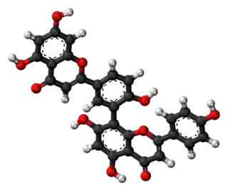 Amentoflavona es un biflavonoide (bis-apigenina) constitutivo de un número de plantas, incluyendo Ginkgo biloba, Chamaecyparis obtusa, Hypericum perforatum)[2] y Xerophyta plicata.[3]